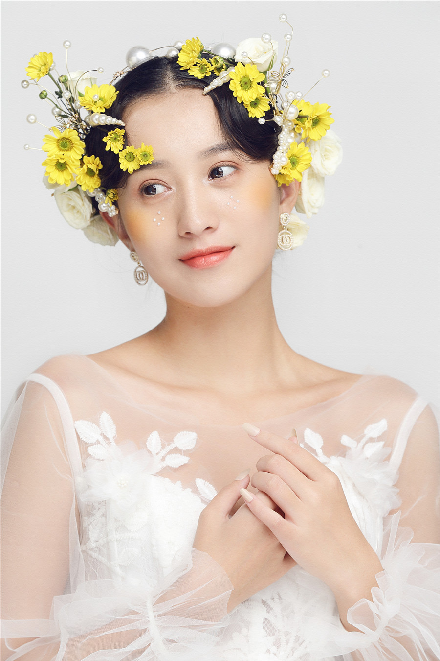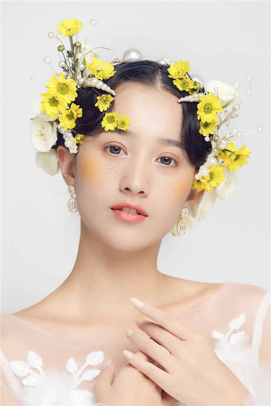 麗竹學(xué)校彩妝作品---森系鮮花造型:美得淡雅脫俗的花朵,縈繞在靈動(dòng)的發(fā)絲上,花開半夏如詩如畫,驚艷了時(shí)光隧道,造就了一人一花一世界。