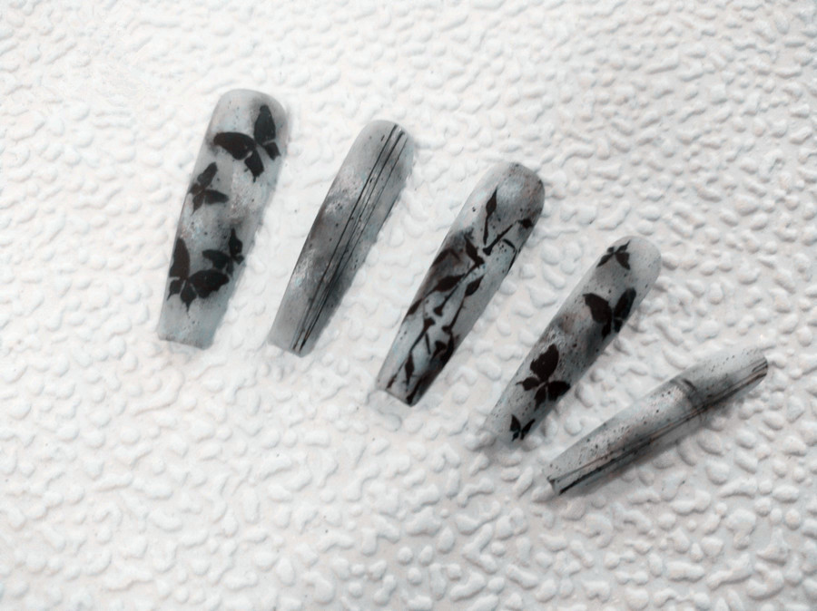 南寧美甲進(jìn)修提升、南寧美甲師日常:那么作為零基礎(chǔ)學(xué)美甲的你,是否想過將時下大熱的蝴蝶元素與水墨花相互結(jié)合打造不一樣的美甲藝術(shù)呢?不如先來看看南寧美甲技校(麗竹美甲技校)里同學(xué)的作品吧!